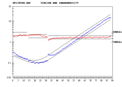| These pages will demonstrate that piano scales with inharmonicity plots (hockey stick) similar to the left column will not have 4:2 and 6:3 octave tests that agree with each other while tuning from the plain wire section into the wound bass section. However, scales with inharmonicity plots similar to the right column will have 4:2 and 6:3 octave tests that closely agree. | |